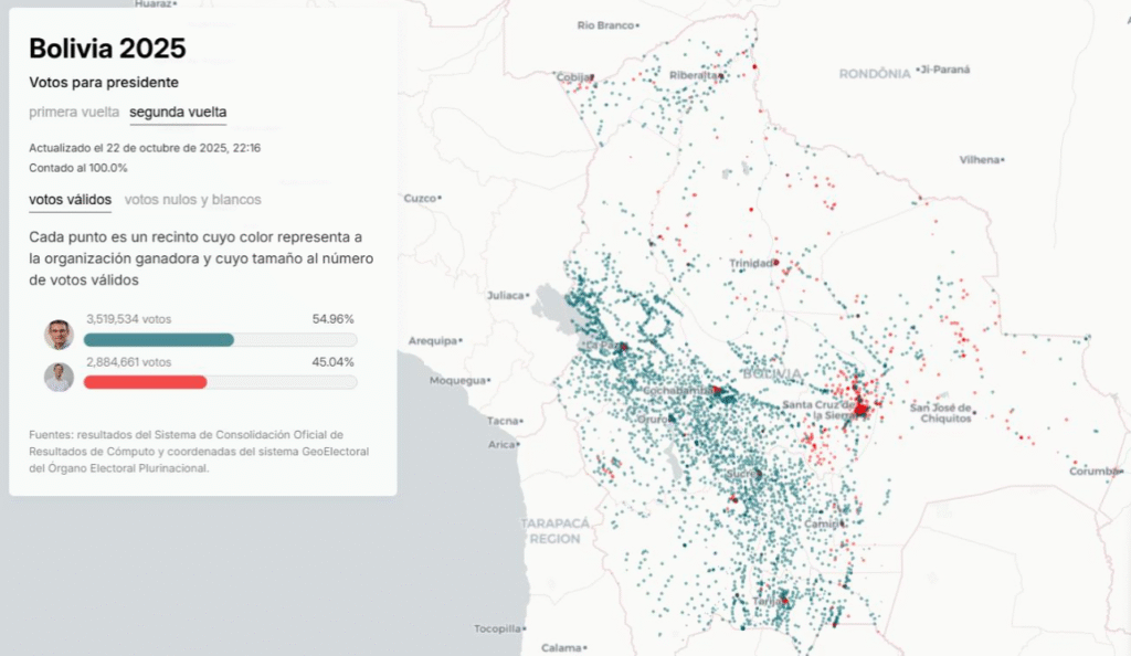 El análisis de los resultados electorales revela una distribución geopolítica predecible: el voto por Paz y Lara se concentró predominantemente en el occidente y los valles, mientras el apoyo a Quiroga encontró su fortaleza en el oriente. Sin embargo, la reacción racista posterior demostró una notable capacidad para trascender fronteras departamentales.