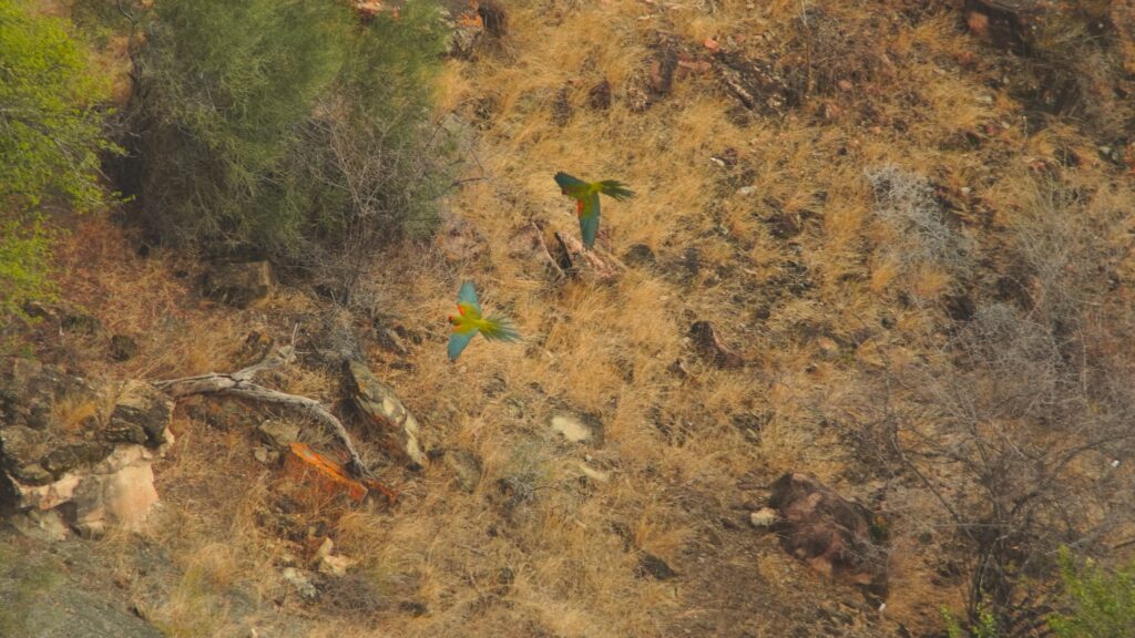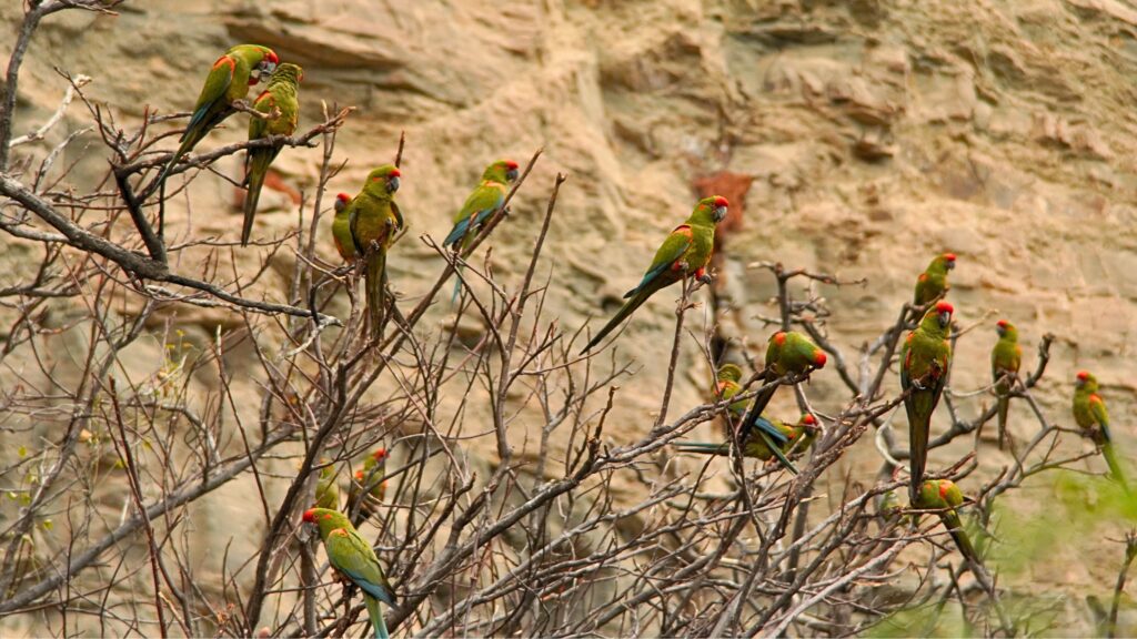 Afuera, una bandada de parabas cruza el valle. Las comunidades las protegen. El modelo funciona. Pero depende de personas específicas que envejecen sin reemplazo claro. Y de turistas que sigan viniendo. Y de que los ríos no se sequen del todo. Y de amenazas que nadie aquí puede controlar.