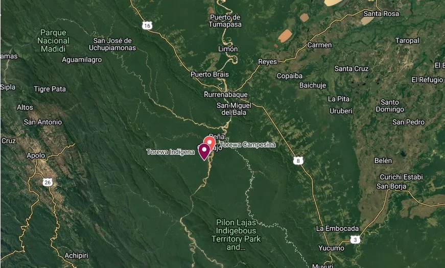 Detrás de este escenario confuso hay un conflicto de tierras de larga data entre dos comunidades que se llaman igual: Torewa; pero que lucen diferente, y que no se quieren. A una se la llama Campesina, a la otra Indígena. La primera es más rústica, con casas de madera y techos de palma; la segunda tiene ladrillo y cemento. Ambas se encuentran al interior del Madidi, a unos cinco kilómetros de distancia, viven del plátano y comparten un territorio de inmensa riqueza natural con oro, madera y quizás hasta petróleo. Pero no quieren compartirlo, ambas se dicen dueñas de lo mismo.